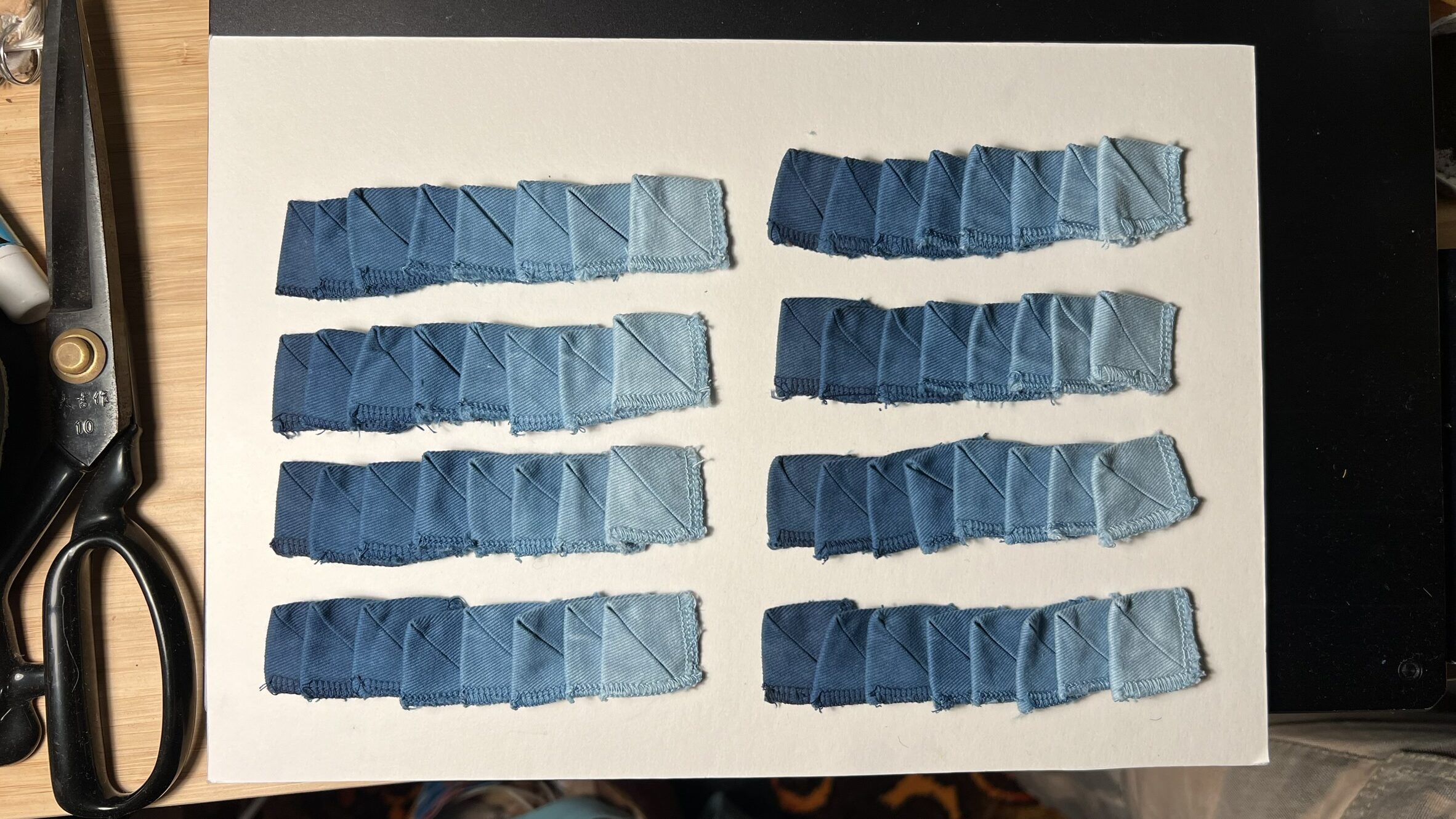 Many of our garments use zero-waste or low-waste patterns, where pattern pieces are arranged to use the entire length and width of the fabric.